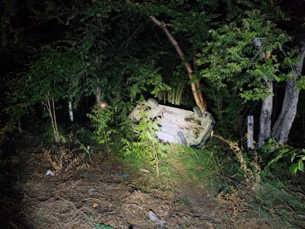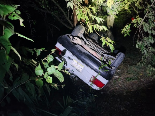 De acuerdo con los primeros reportes, el vehículo circulaba hacia Ciudad Valles cuando salió del camino y quedó con las llantas hacia arriba en medio de la vegetación.