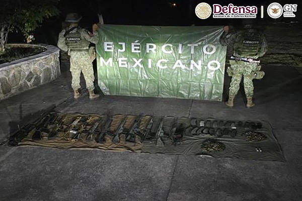 En Buenavista, los agentes de seguridad detuvieron a cinco personas (dos de ellas menores de edad) a quienes les aseguraron cinco armas largas, 18 cargadores, 1,250 cartuchos y equipo táctico.