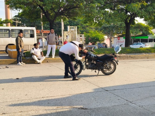 El motociclista, trabajador de una clÃnica del ISSSTE, cayó al pavimento y sufrió raspones en distintas partes del cuerpo. Paramédicos de la Cruz Roja le brindaron auxilio y lo trasladaron para valoración médica.