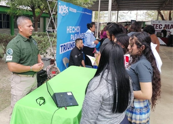 Con el objetivo de acercar oportunidades de formación profesional en materia de seguridad pública a las y los jóvenes potosinos, la Academia de Seguridad y Protección Ciudadana del Estado, participó en la Feria Profesiográfica realizada en el Colegio de Bachilleres Plantel No. 04, en el municipio de El Naranjo.