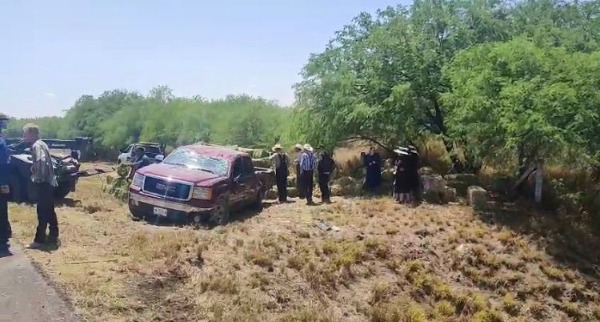 El accidente ocurrió en el kilómetro 6, muy cerca del entronque del camino al ejido de San Francisco de Asís, donde la unidad GMC Sierra, color guinda, volcó debido a que el conductor perdió el control a consecuencia de la ponchadura de un neumático.
