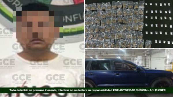 Un sujeto identificado como objetivo criminal, relacionado con diversos delitos de alto impacto, fue capturado con una importante cantidad de narcóticos por la Guardia Civil Estatal (GCE), en la avenida Centenario del municipio de Rioverde, el jueves por la noche.