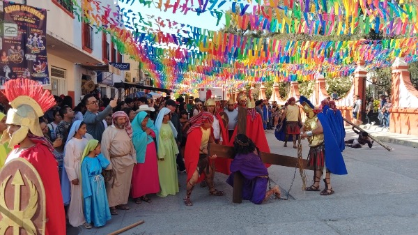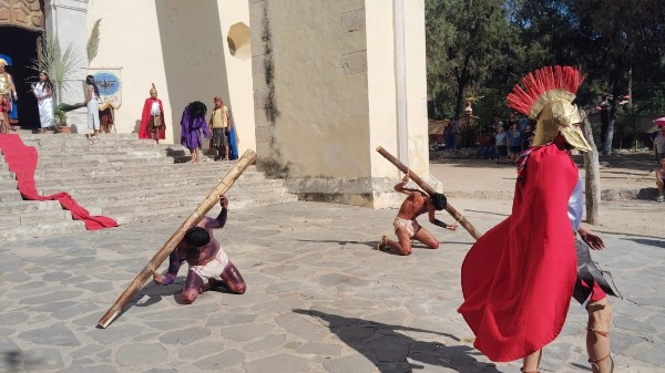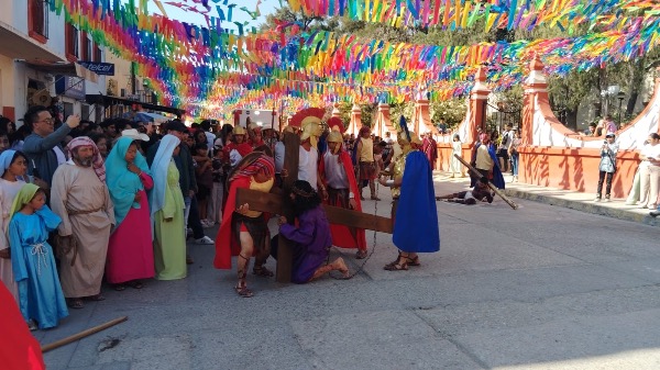 La actividad comenzó desde el atrio de la Parroquia de la Virgen de la Purísima Concepción, para proseguir sobre la avenida General Ignacio Zaragoza y así llegar al parque del Barrio Villa de San José, sitio donde se lleva a cabo la crucifixión de Jesús.