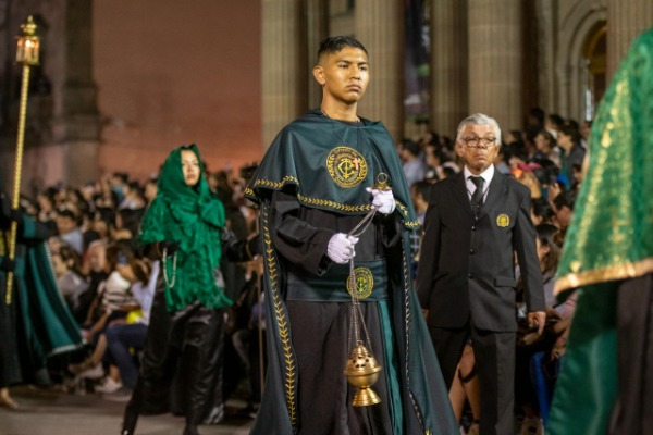 El tradicional recorrido inició en punto de las 20:00 horas en el Templo del Carmen, donde las cofradías se presentan portando túnicas en colores rojo, blanco, morado y negro, principalmente, representando los distintos pasajes de la Pasión y Muerte de Cristo. En un ambiente de profundo respeto y solemnidad, el paso de las cofradías rompió el silencio de la noche, generando una experiencia única que envuelve tanto a participantes como a espectadores.