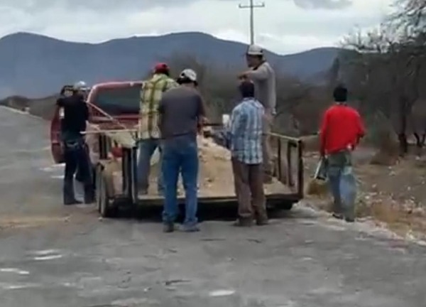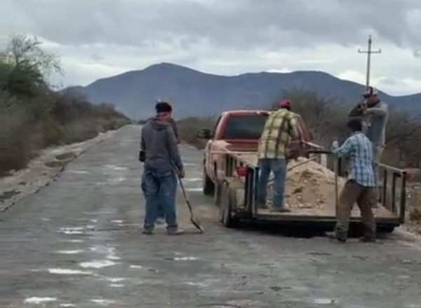 A pesar de las inclemencias del clima, al registrarse lluvias durante el domingo 05 de abril, salió un considerable grupo de personas que con camionetas, herramientas de trabajo y hasta una máquina, fueron tapando cada uno de los baches de este camino con tierra.