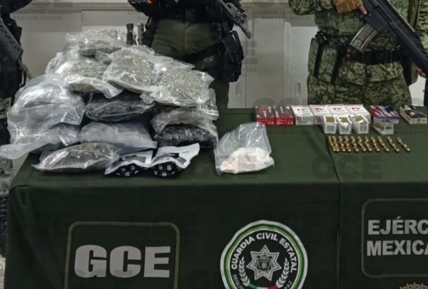 Como resultado de los trabajos del operativo Base de Operaciones Mixtas Interinstitucionales (BOMI), efectuados por la Guardia Civil Estatal (GCE) en coordinación con la Secretaría de la Defensa Nacional (Sedena) y la Guardia Nacional (GN), en el municipio de Mexquitic de Carmona, se logró el aseguramiento de droga y cartuchos útiles.