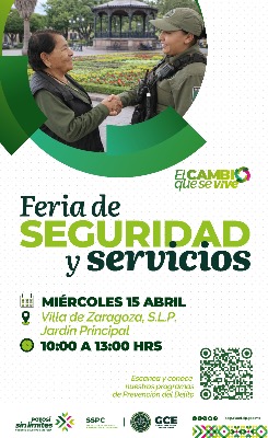 Siguiendo la instrucción del Gobernador Ricardo Gallardo Cardona de fortalecer la cercanía con la población, la Secretaría de Seguridad y Protección Ciudadana (SSPC), en coordinación con los ayuntamientos de Villa de Zaragoza y Ahualulco, realizará Ferias de Seguridad y Servicios los días 15 y 23 de abril. Estas actividades acercan la atención directa a las familias, reforzando la prevención y la confianza en las instituciones.