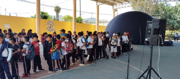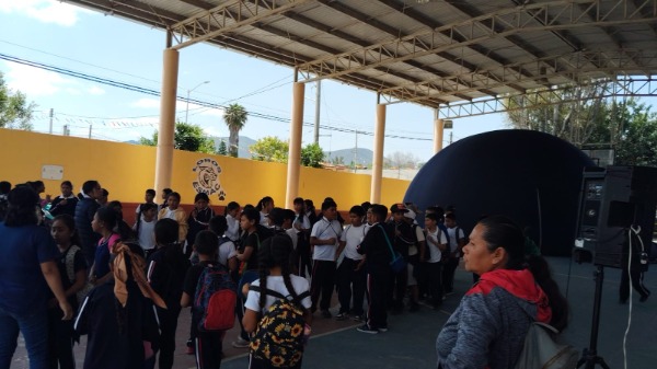 Al celebrarse el 72 aniversario de la fundaciテウn de la Escuela Secundaria "Manuel テ」ila Camacho" en el municipio de Ciudad del Maテュz, este dテュa hubo una actividad especial con un domo planetario.