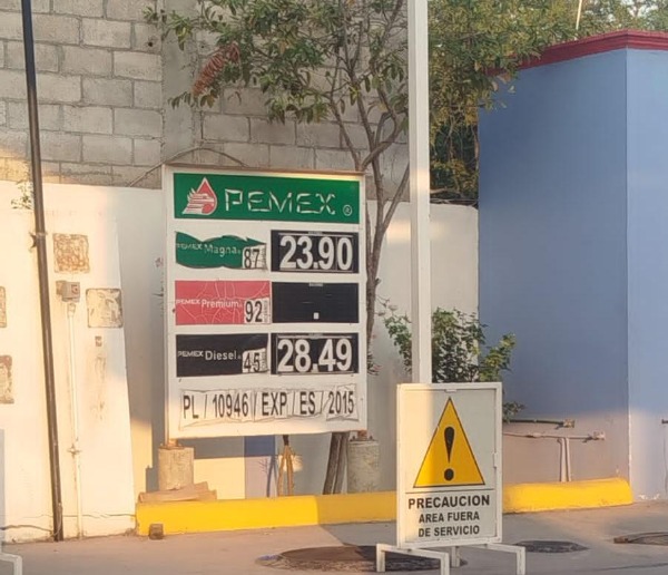 -Ciudad del Maíz: gasolina regular $24.00, Premium $28.65, diésel $28.80