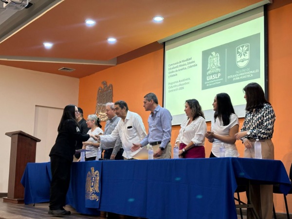 Durante la ceremonia de despedida y abanderamiento "Horizontes FEPZH 2026", realizada en el auditorio "Francisco Gutiérrez Castellanos", 52 estudiantes de la Facultad de Estudios Profesionales Zona Huasteca (FEPZH), campus Ciudad Valles, de la Universidad Autónoma de San Luis Potosí (UASLP), fueron reconocidos por integrarse a programas de movilidad académica nacional e internacional, logro que refleja la calidad educativa de la institución y su compromiso con la formación de profesionistas capaces de contribuir al desarrollo social, al ampliar su visión mediante experiencias académicas y culturales fuera de su entorno.