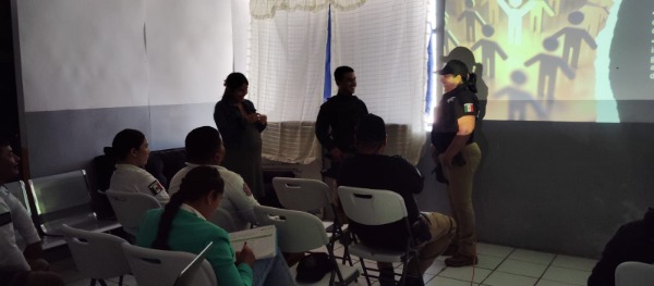 Esta actividad fue en las instalaciones de la Comandancia, con la coordinación de la Dirección de la corporación y la Unidad para la Prevención del Delito, abordándose el tema de sensibilización y trato a la víctima.
