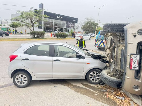 De acuerdo con los primeros reportes, el percance ocurrió cuando el conductor de una camioneta tipo SUV intentó incorporarse hacia la calle Padre Xavier, en el fraccionamiento Central Comercial, momento en el que fue embestido por un automóvil compacto que tenía preferencia sobre la vía principal.