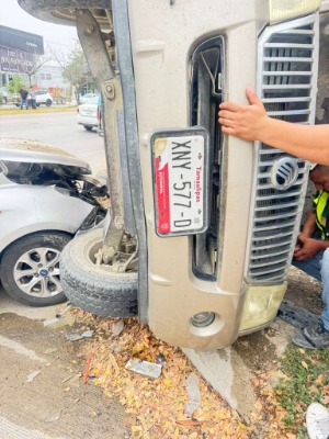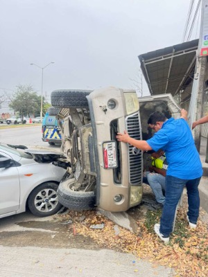 Vuelca camioneta tras choque en acceso a la Central de Ciudad Valles; saldo, un lesionado leve