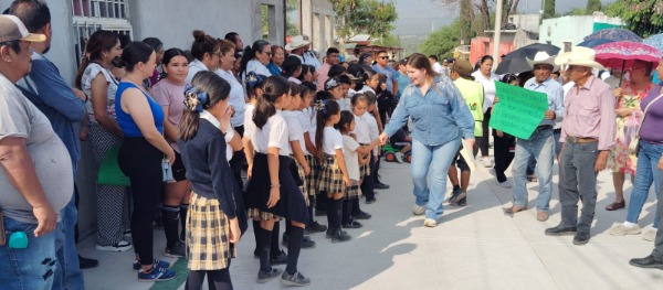 La tarde de ayer lunes la alcaldesa Rosa Angélica Martínez Linares, junto a su equipo de trabajo, se dio a la tarea de recorrer esta nueva calle y hacer el corte de listón inaugural, vía que ahora es de concreto hidráulico y cuenta con sus respectivas banquetas y guarniciones.