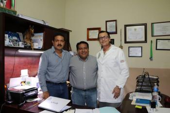 Martín E. Martínez Morales y Rubén Herbert, Secretario General y director de Redes de Salud, respectivamente presentaron al pediatra Guillermo Ocampo que brindará atención en el Hospital Básico Comunitario, ubicado en la localidad de San Antonio Xalcuayo.