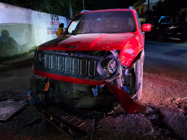El percance ocurrió en el cruce de la avenida México y la calle Jazmín, cuando los tripulantes de una motocicleta roja con negro circulaban sobre la vía principal y fueron impactados por una camioneta Jeep color rojo, cuyo conductor intentó atravesar sin respetar la preferencia de paso.