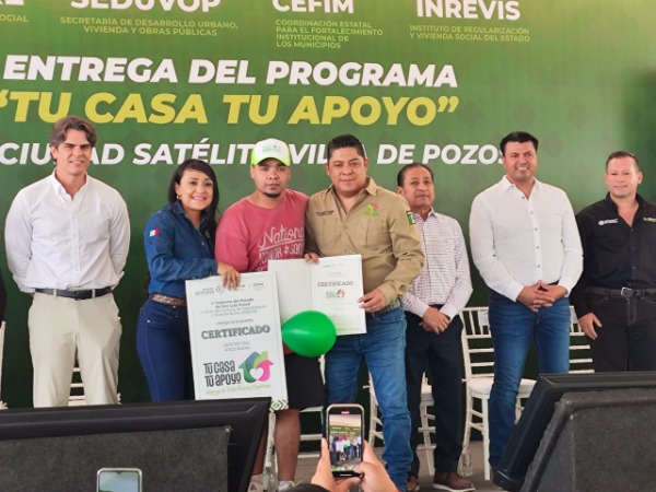 Con la asistencia de la concejal presidenta de Villa de Pozos Teresa de Jesús Rivera Acevedo, el Gobernador Ricardo Gallardo, dijo que además de un lote, en las próximas etapas se beneficiará con paquetes de materiales de construcción gratuitos, además de la certeza jurídica con escrituras, lo que generó un fuerte aplauso y la felicidad de las y los beneficiarios.