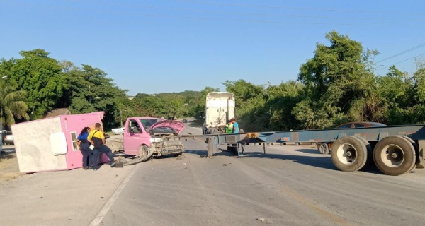El remolque se soltó de la unidad principal, invadió el carril contrario y terminó chocando contra una camioneta de color rosa, propiedad de la empresa Sabritas.