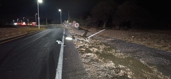 Una pipa cargada con gasolina volcó en la supercarretera estatal 75 Rioverde-San Luis Potosí el martes por la madrugada, provocando la movilización de policías y equipos de emergencia ante el derrame de combustible.