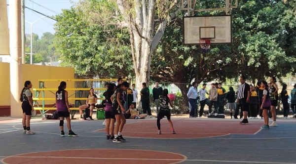 • En la cabecera municipal de Ciudad del Maíz siguen desarrollándose los juegos deportivos en la disciplina de basquetbol, con la participación de alumnos provenientes de diversos municipios del estado.