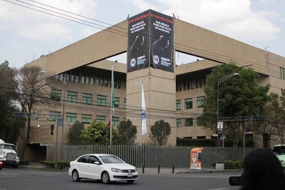 • El Partido Acción Nacional colocó dos lonas en la sede nacional para demandar al Gobierno Federal que abastezca de gasolina a los estados y ciudades que se han visto afectados en el país.