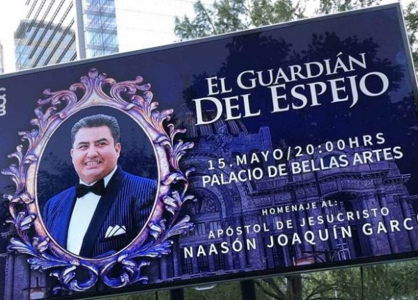 Incluso, en una de las publicaciones del evento en el Palacio de Bellas Artes, el copy original decía "un homenaje al Apóstol de Jesucristo *Naasón Joaquín García*", mismo que cambiaron tras las criticas al evento religiosos en un inmueble del Estado.