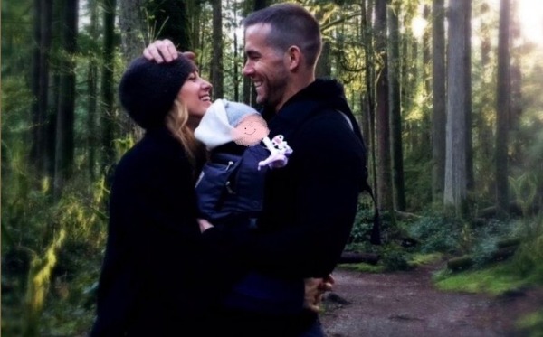 En su cuenta de Twitter, Reynolds compartió una fotografía en la que posa en un bosque canadientes junto a su esposa , la actriz Blake Lively, y sostiene en sus brazos a su bebé, a quien le cubrió el rostro.