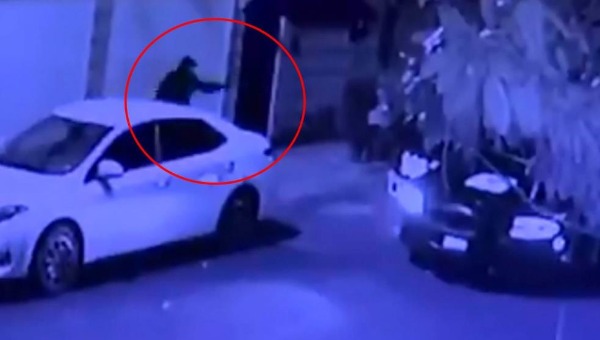 Todo quedó registrado en video: la noche del domingo, una camioneta en la que iban los ladrones se topó de frente con una patrulla de la Policía, a la que logró esquivar para escapar, sin embargo, uno de los sospechosos no alcanzó a salir a tiempo de la residencia que intentaban saquear y cuando salió abrió fuego contra los oficiales.