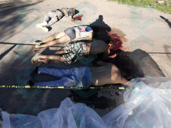 De inmediato agentes investigadores se dirigieron al lugar, en donde confirmaron la presencia de cuatro hombres, a mitad del camino quienes a simple vista presentan varios disparos de arma de fuego.