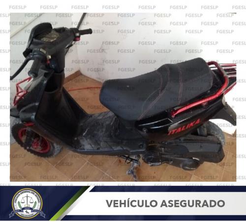 Personal operativo de la Fiscalía General del Estado de San Luis Potosí (FGESLP), recuperó una motoneta que días antes había sido despojada de su dueño en Matehuala.