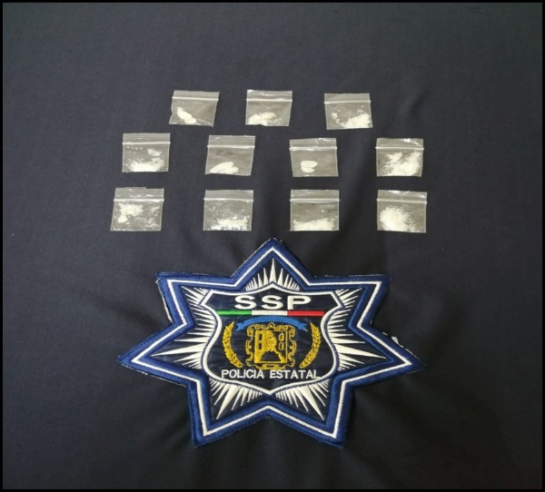 Uno de los hechos ocurrió en Avenida Providencia y calle Carlos V, en la colonia San Francisco, en el municipio de Soledad de Graciano Sánchez, donde policías de Fuerza Metropolitana Estatal (FME), detuvieron a Carlos S., de 26 años de edad, después de asegurarle 11 dosis de la droga sintética conocida como cristal.