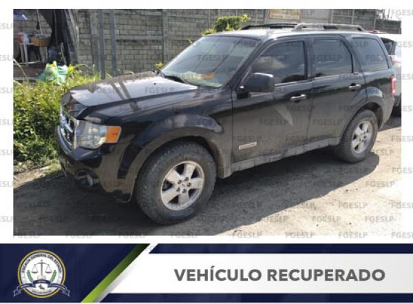Elementos de la FGESLP lograron ubicar y asegurar la camioneta marca Ford, Escape, color negro, modelo 2005, de procedencia extranjera, en el libramiento Poniente de la ciudad Capital.
