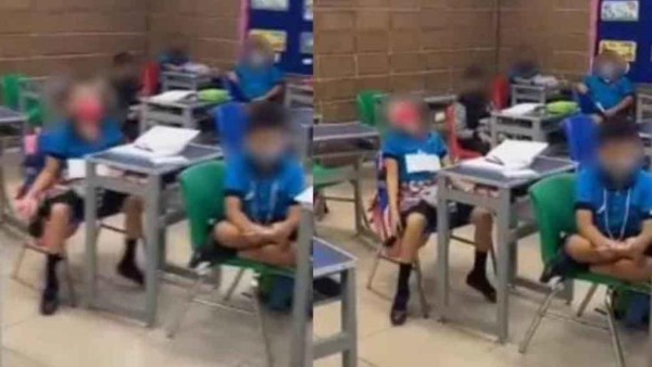 El salón está lleno de infantes, todos sentados en un salón de clases en una escuela de Torreón, Coahuila. Su profesora imita el Juego del Calamar y con un llamado de "jugaremos, muévete, luz verde, luz roja" detecta a una niña que se mueve, ella finge dispararle, tal como ocurre en la serie.