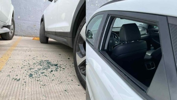 Cuando la mujer regresó, encontró su camioneta vacía y el vidrio de la ventana derecha trasera hecha añicos en el pavimento. Un oficial de policía llegó al lugar para examinar la situación e intentar resolverla.
