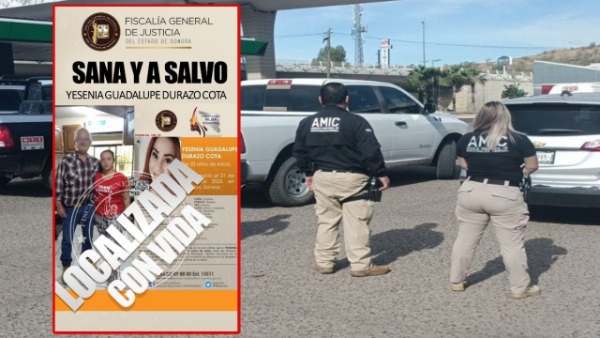"Yesenia Guadalupe Durazo Cota, de 33 años de edad, fue localizada sana y salva. En tanto se realizaba un operativo de búsqueda en jornada de acompañamiento al Colectivo Madres Buscadoras de Sonora", señaló la FGJE.