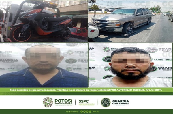 Oficiales de la Guardia Civil Estatal (GCE) detuvieron a dos hombres en hechos distintos, después de que no pudieran acreditar ser dueños de las unidades motoras en las que se desplazaban, mismas que contaban con reporte de robo.