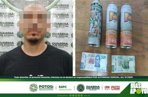 Los hechos tuvieron lugar en la colonia Saucito, efectivos de la GCE visualizaron a un hombre con tres latas de pintura en aerosol, quien posiblemente realizaba daños a inmuebles particulares, por ello se aproximaron a él. Omar "N" de 40 años de edad, trató de evadir su responsabilidad legal y ofreció 700 pesos a cambio de que le dejaran en libertad.