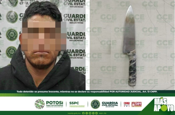 El detenido quedó a disposición de la Fiscalía General del Estado, con el arma punzocortante asegurada.