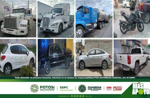 Como resultado del operativo "Rastreador", policías de la Guardia Civil Estatal (GCE) recuperaron ocho unidades motoras con reporte de robo, la División Caminos aseguró tres unidades de carga, en menos de 24 horas de su hurto.