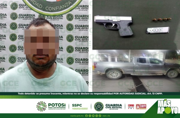 En el marco de las acciones de seguridad, que son desdobladas para el combate a delitos de alto impacto, efectivos de la Guardia Civil Estatal (GCE) detuvieron a un hombre, por la probable portación de una pistola.