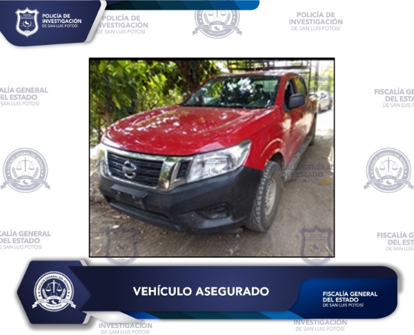 La unidad en cuestión es de la marca Nissan tipo NP300, modelo 2020, de color rojo, la cual al inspeccionarla se identificó que las láminas vehiculares son clonadas, debido a que no son del material original y el número de serie se encuentra alterado; además al consultar la base de datos se arrojó que cuenta con reporte de robo en el estado de Querétaro.