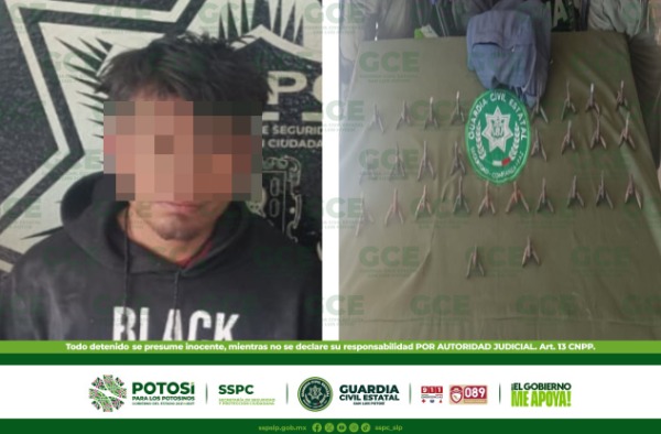 Como resultado de los trabajos preventivos, efectuados dentro del operativo Altiplano Seguro, agentes de la Guardia Civil Estatal (GCE), detuvieron a un presunto miembro de la delincuencia, con artefactos de varilla conocidos como "poncha llantas".