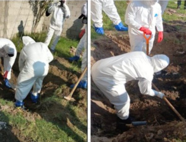 Durante un cateo las autoridades encontraron cuatro cuerpos enterrados en el patio de la casa.