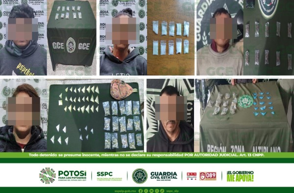 Elementos de la Guardia Civil Estatal detuvieron en distintas acciones a cinco presuntos narcomenudistas en distintas acciones a quienes se les aseguró 106 dosis de droga.