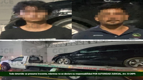 Los conductores, Rodrigo "N" de 34 años y Luis "N" de 19 años, transportaban un vehículo Honda CR-V, 2019, color negro, con reporte de robo en el municipio de Villa de Reyes, por lo que al estar posiblemente vinculados a acciones que ponen en riesgo la tranquilidad de las y los potosinos, fueron detenidos.