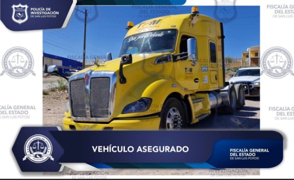 Como resultado de labores operativas en la capital potosina, la Fiscalía General del Estado de San Luis Potosí (FGESLP), a través de la Policía de Investigación (PDI), aseguró un tractocamión que contaba con reporte de robo.