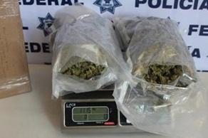Más de un kilo de una hierba con todas las características de la marihuana fue asegurada en una empresa de paquetería por elementos de la Policía Federal. La supuesta droga iba envuelta al vacío en empaques de plástico transparente y tenía como destino el estado de Tamaulipas.