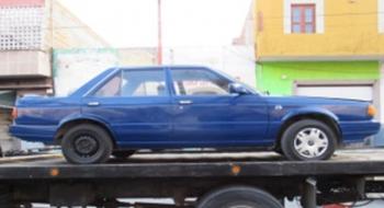 La primera de las unidades fue localizada en las calles Vicente Guerrero y Avenida Adolfo López Mateos, en la colonia San Antonio. Se trata de un Nissan Tsuru, modelo 1991, color azul, con placas de San Luis Potosí. Cuenta con reporte de robo del día 6 de febrero de 2017. Fue encontrada sin batería.
