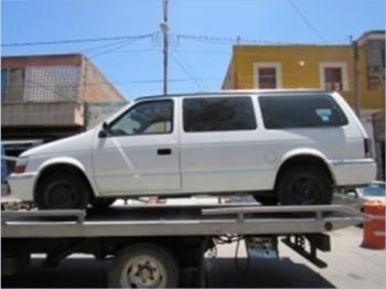 Otro vehículo fue ubicado en el Camino Antiguo a Soledad, en la colonia San Felipe. Se trata de un Chrysler Voyager, modelo 1993, color blanco con placas de San Luis Potosí. Cuenta con reporte de robo del 17 de abril de 2017. Fue hallado estacionado, con el cofre entreabierto y sin acumulador.