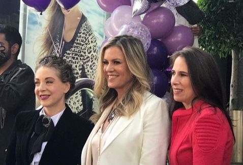La directora de la boutique Frattina, Alicia López Ostolaza cortó el listón junto a Rebecca y Edith.